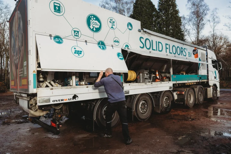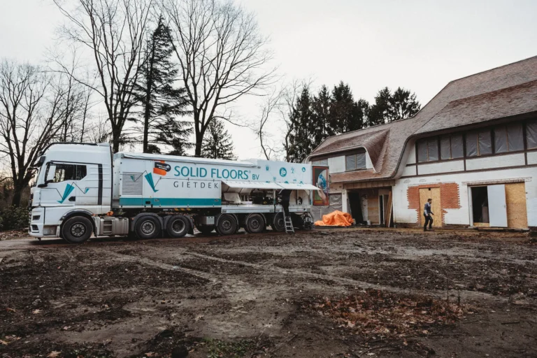 Solid Floors produceert haar cementdekvloeren en gietdekvloeren met een mobiele mengcentrale die dagproducties kan maken van 1m2 tot 500 m2 per dag. De productie van de benodigde mortel vindt ter plekke plaats door een uniek productieproces waarbij de benodigde grondstoffen al in de mobiele centrale zit en waar nodig op de bouwplaats kan worden bijgeleverd.